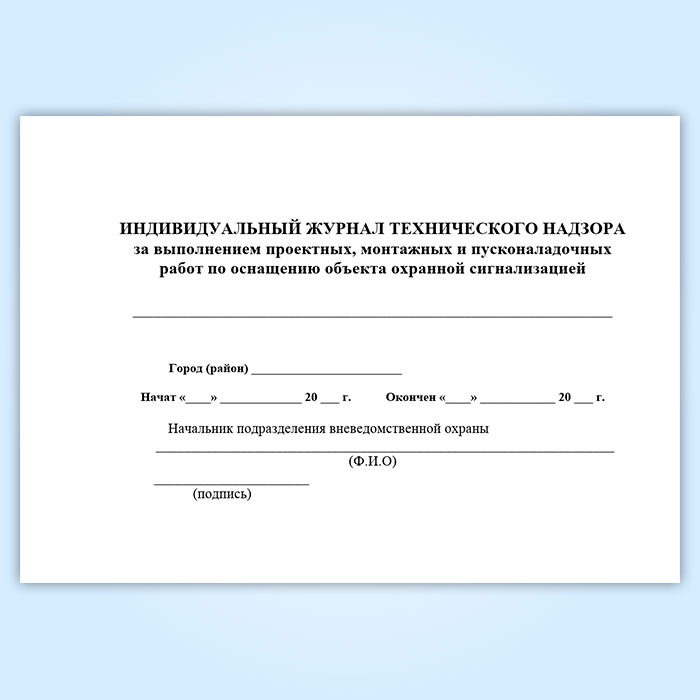 Индивидуальный журнал технического надзора за выполнением проектных, монтажных и пусконаладочных работ по оснащению объекта охранной сигнализацией в Ачинске купить