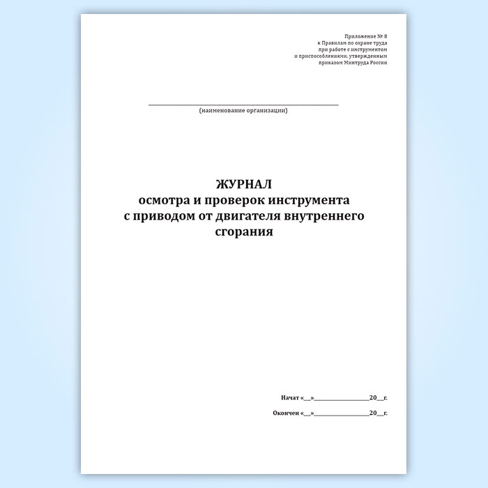 Журнал осмотра и проверок инструмента с приводом от двигателя внутреннего сгорания в Ачинске купить