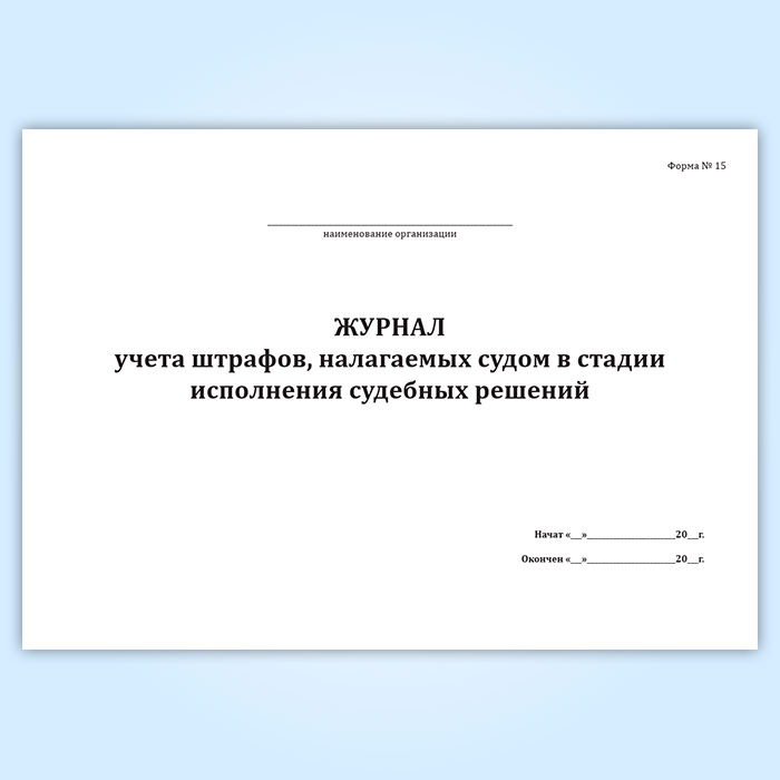 Журнал учета штрафов, налагаемых судом в стадии исполнения судебных решений (форма № 15) в Ачинске купить