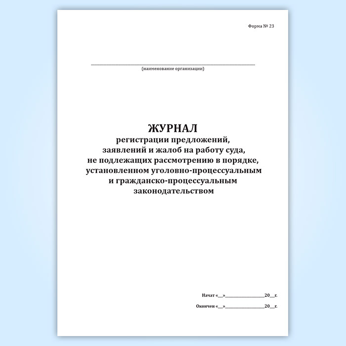 Журнал регистрации предложений, заявлений и жалоб на работу суда, не подлежащих рассмотрению в порядке, установленном уголовно-процессуальным и гражданско-процессуальным законодательством (форма № 23) в Ачинске купить