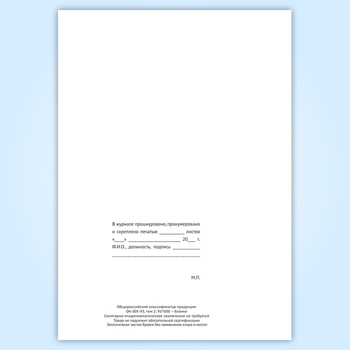 Вы получаете печатную продукцию прошнурованной и c местом для вашей печати в соответствии с действующими нормативными документами: