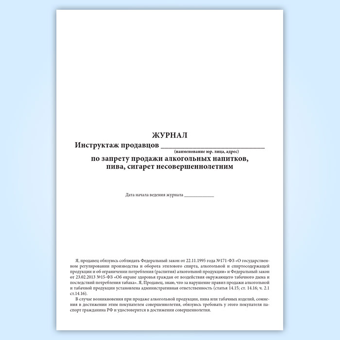 Журнал инструктажа продавцов по запрету продажи алкогольных напитков, пива, сигарет несовершеннолетним в Ачинске купить