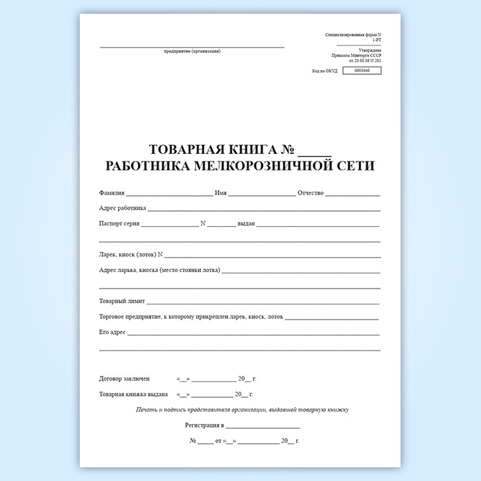 Товарная книга работника мелкорозничной сети. Специализированная (форма № 1-РТ) в Ачинске купить
