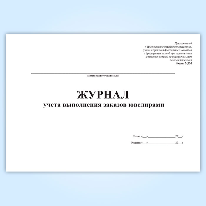 Журнал учета выполнения заказов ювелирами (форма 2-ДМ) в Ачинске купить