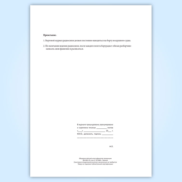 Бортовой журнал радиосвязи воздушного судна авиапредприятия в Ачинске купить