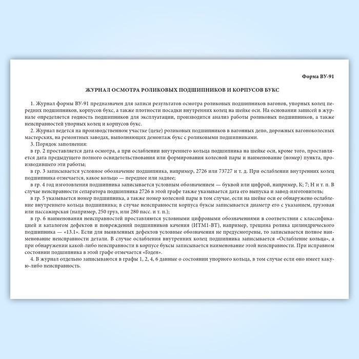 Журнал осмотра роликовых подшипников и корпусов букс (форма ВУ-91) в Ачинске купить