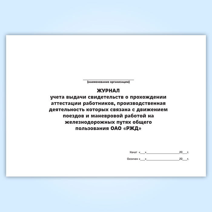 Журнал учета выдачи свидетельств о прохождении аттестации работников, производственная деятельность которых связана с движением поездов и маневровой работой на железнодорожных путях общего пользования ОАО «РЖД» в Ачинске купить