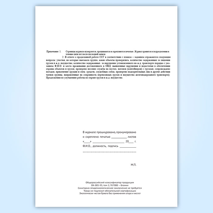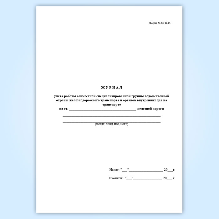 Журнал учета работы совместной специализированной группы ведомственной охраны железнодорожного транспорта и органов внутренних дел на транспорте (форма № ОГВ-15) в Ачинске купить