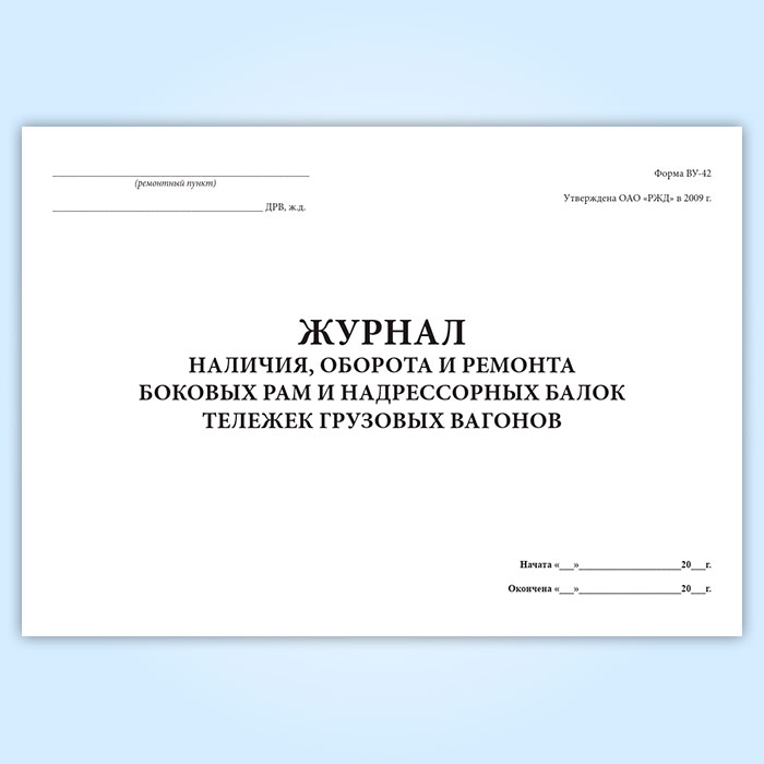 Журнал учета наличия, оборот и ремонт боковых рам и надрессорных балок тележек грузовых вагонов (форма ВУ-42) в Ачинске купить