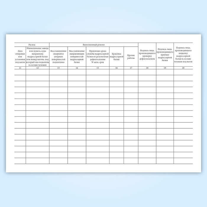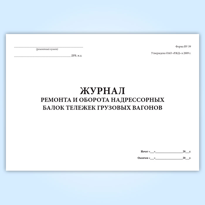 Журнал ремонта и оборота надрессорных балок тележек грузовых вагонов (форма ВУ-39) в Ачинске купить