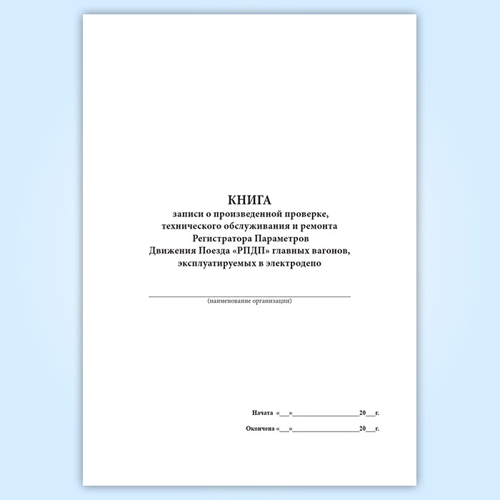 Книга записи о произведенной проверке, технического обслуживания и ремонта Регистратора Параметров Движения Поезда «РПДП» главных вагонов, эксплуатируемых в электродепо в Ачинске купить