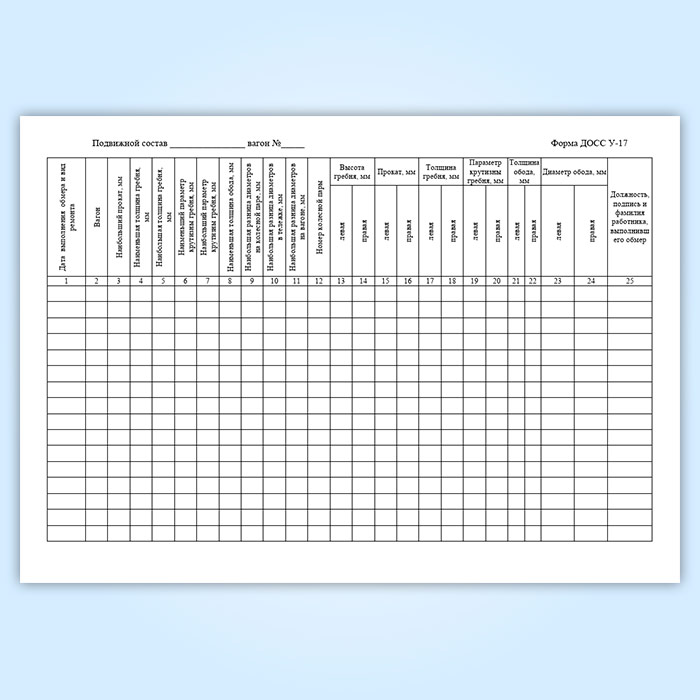 Книга состояния колесных пар скоростных/высокоскоростных электропоездов (форма ДОСС У-17) в Ачинске купить
