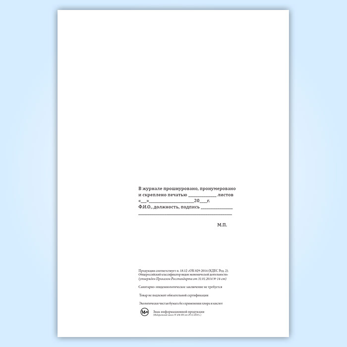 Вы получаете печатную продукцию прошнурованной и c местом для вашей печати в соответствии с действующими нормативными документами: