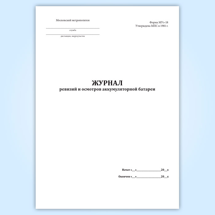 Журнал ревизий и осмотров аккумуляторной батареи (форма МУэ-18) в Ачинске купить