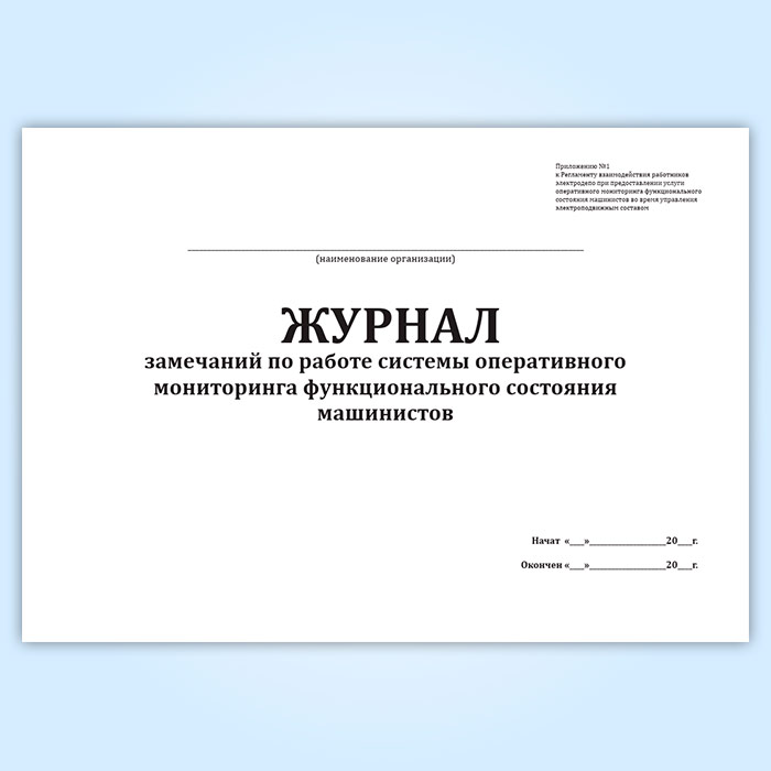 Журнал замечаний по работе системы оперативного мониторинга функционального состояния машинистов в Ачинске купить