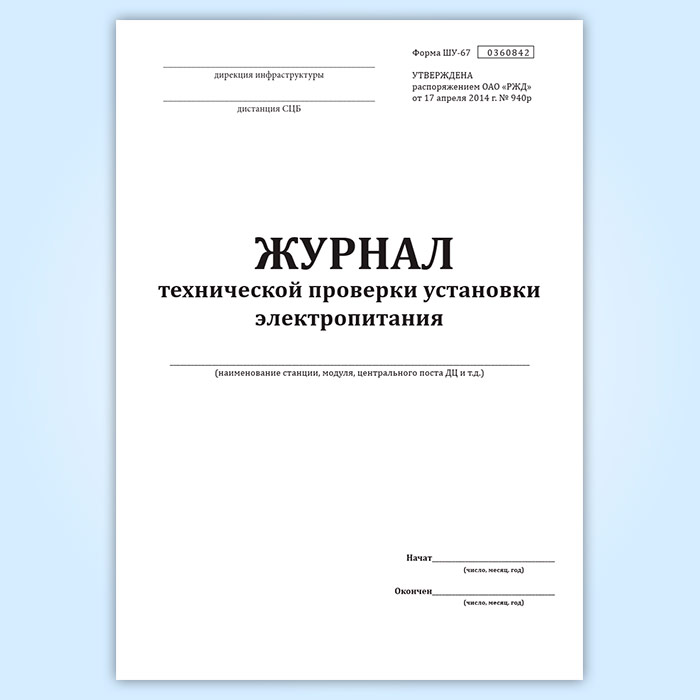 Журнал технической проверки установки электропитания (форма ШУ-67) в Ачинске купить