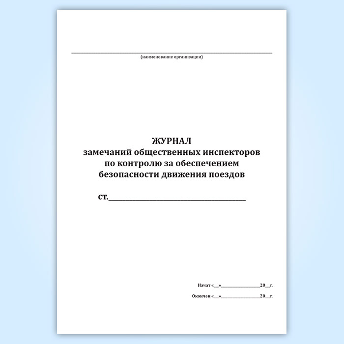 Журнал замечаний общественных инспекторов по контролю за обеспечением безопасности движения поездов в Ачинске купить