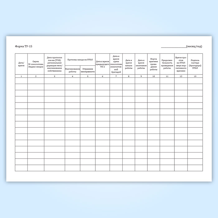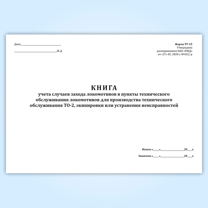 Книга учета случаев захода локомотивов в пункты технического обслуживания локомотивов для производства технического обслуживания ТО-2, экипировки или устранения неисправностей (форма ТУ-15) в Ачинске купить