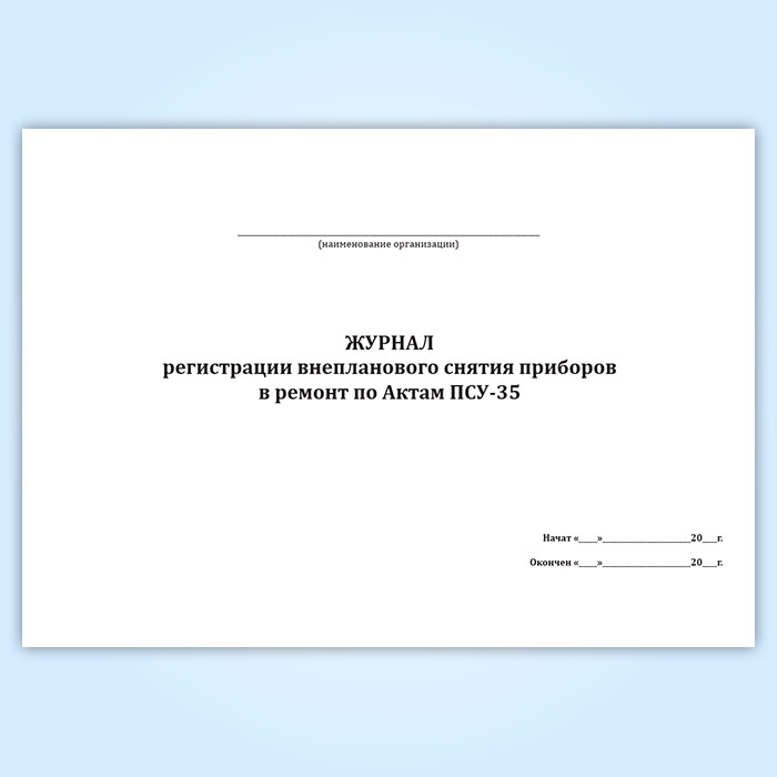Журнал регистрации внепланового снятия приборов в ремонт по Актам ПСУ-35 в Ачинске купить