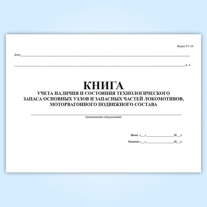 Книга учета наличия и состояния технологического запаса основных узлов и запасных частей локомотивов, моторвагонного подвижного состава (форма ТУ-20) в Ачинске купить