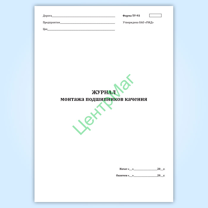 Журнал монтажа подшипников качения (форма ТУ-93) в Ачинске купить