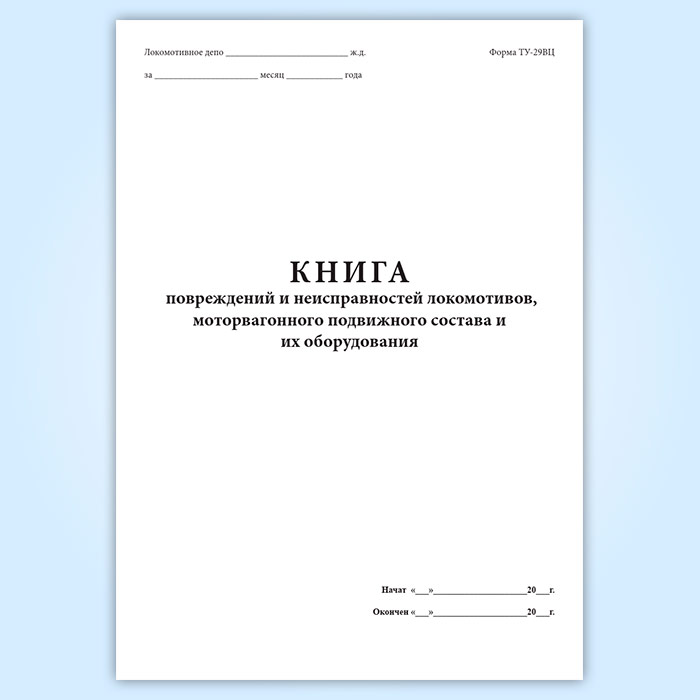 Книга повреждений и неисправностей локомотивов, моторвагонного подвижного состава и их оборудования (форма ТУ-29ВЦ) в Ачинске купить