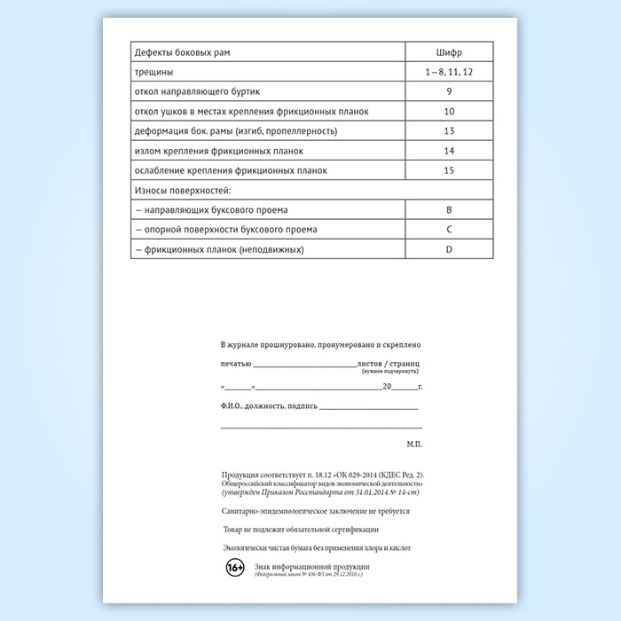 Журнал учета результатов осмотра и дефектоскопирования боковых рам тележек грузовых вагонов в Ачинске купить