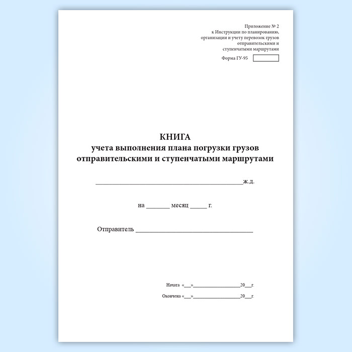 Книга учета выполнения плана погрузки грузов отправительскими и ступенчатыми маршрутами (форма ГУ-95) в Ачинске купить