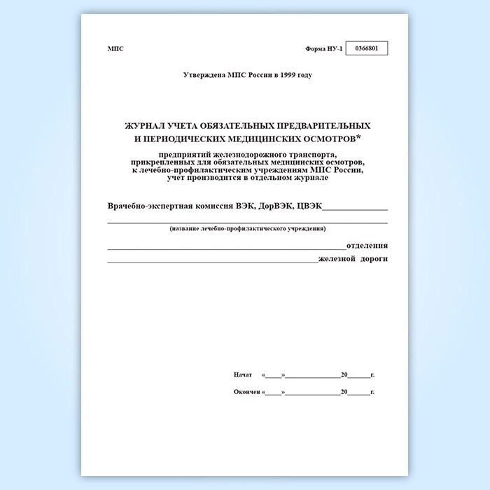 Журнал учета обязательных предварительных и периодических медицинских осмотров (форма НУ-1) в Ачинске купить