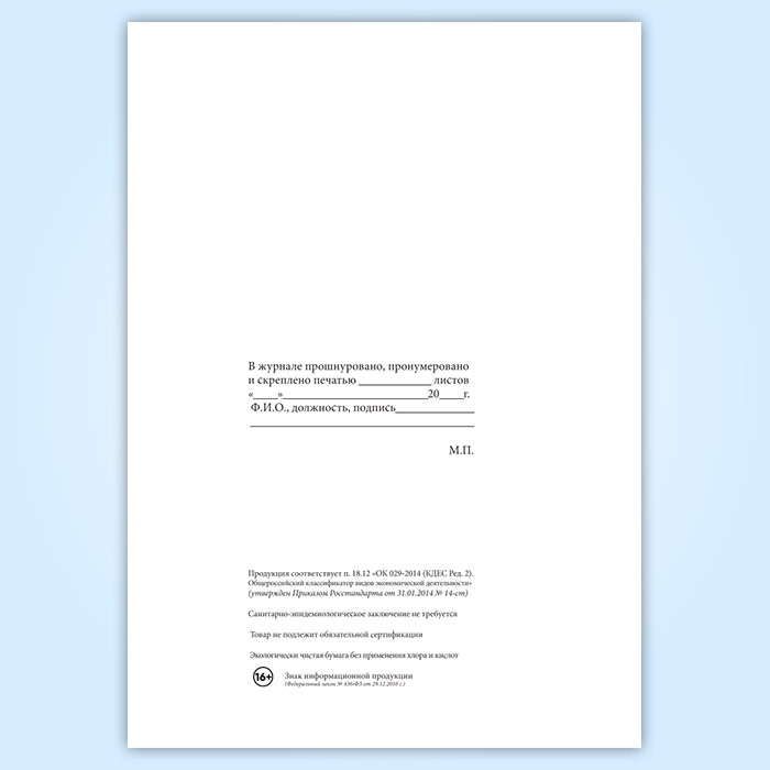 Вы получаете печатную продукцию прошнурованной и c местом для вашей печати в соответствии с действующими нормативными документами: