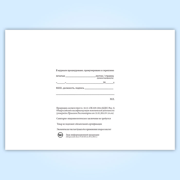 Вы получаете печатную продукцию прошнурованной и c местом для вашей печати в соответствии с действующими нормативными документами: