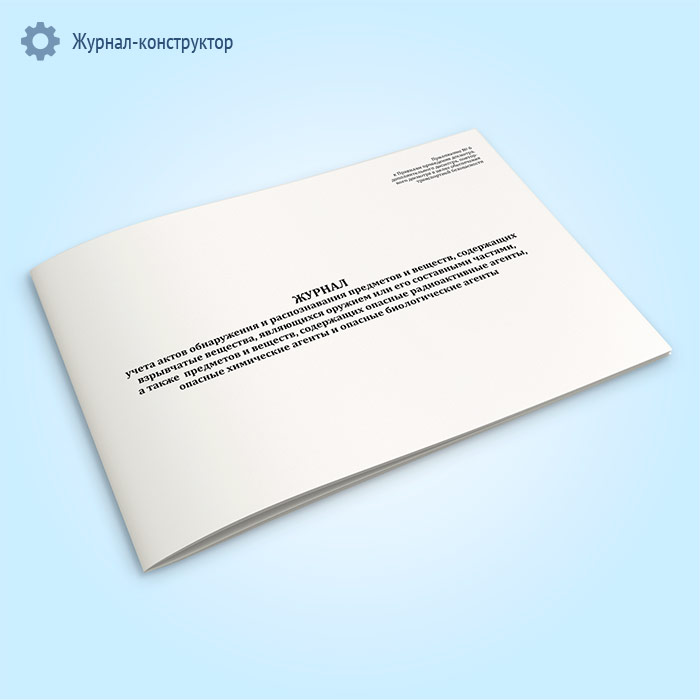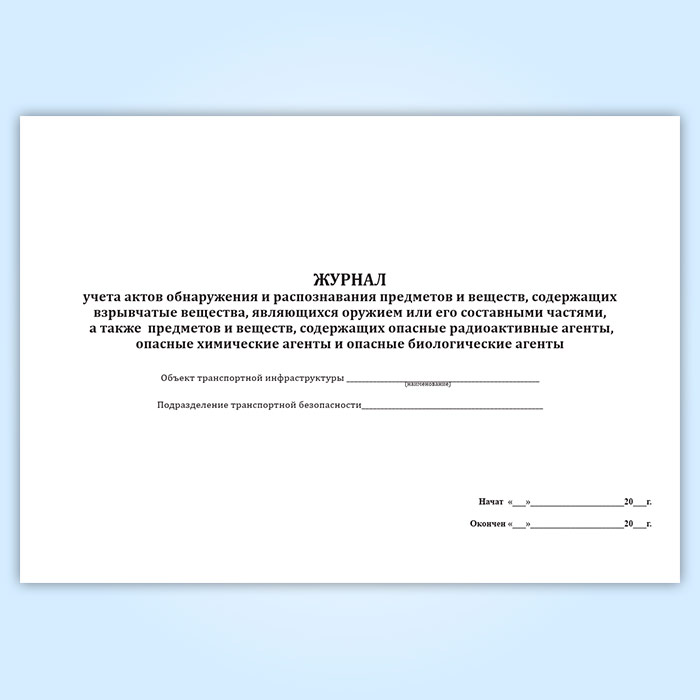 Журнал учета актов обнаружения и распознавания предметов и веществ, содержащих взрывчатые вещества, являющихся оружием или его составными частями, а также предметов и веществ, содержащих опасные радиоактивные агенты, опасные химические агенты и опасные биологические агенты в Ачинске купить