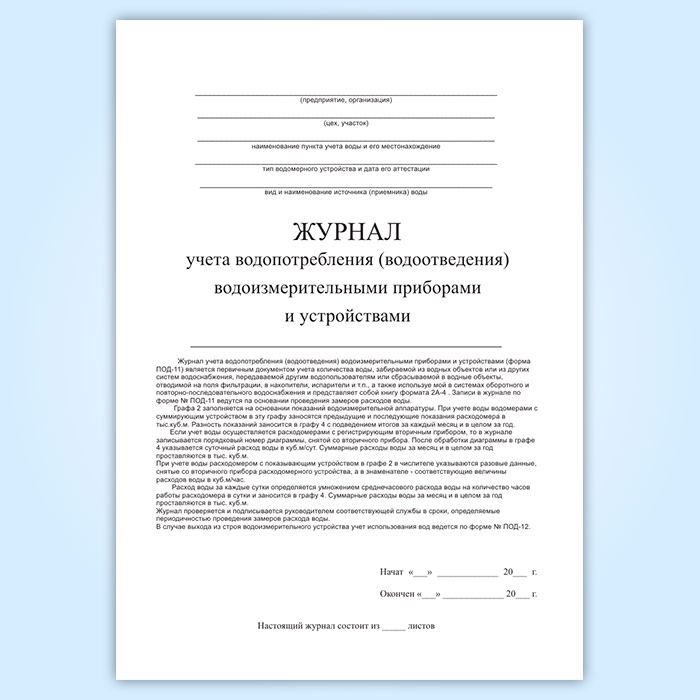 Журнал учета водопотребления (водоотведения) водоизмерительными приборами и устройствами (форма ПОД-11) в Ачинске купить