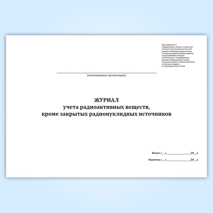 Журнал учета радиоактивных веществ, кроме закрытых радионуклидных источников в Ачинске купить