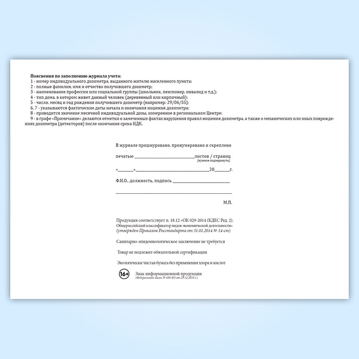Журнал учета индивидуального дозиметрического контроля внешнего гамма-излучения в Ачинске купить
