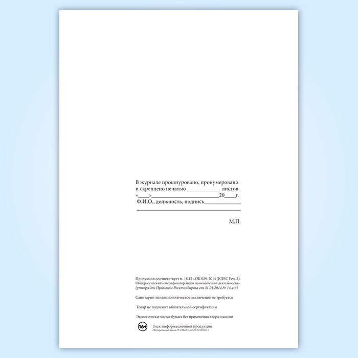 Вы получаете печатную продукцию прошнурованной и c местом для вашей печати в соответствии с действующими нормативными документами: