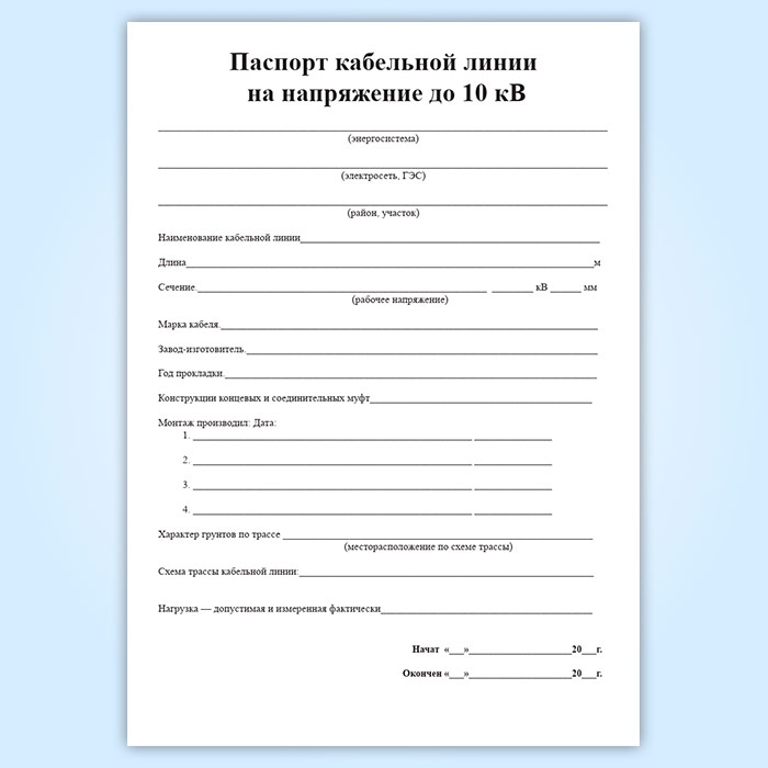 Паспорт кабельной линии на напряжение до 10 кВ в Ачинске купить