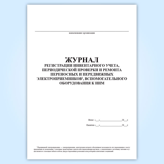 Журнал регистрации инвентарного учета, периодической проверки и ремонта переносных и передвижных электроприемников, вспомогательного оборудования к ним в Ачинске купить