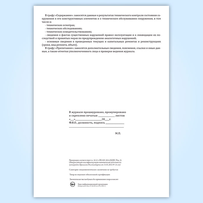 Технический журнал по эксплуатации гидротехнического сооружения в Ачинске купить