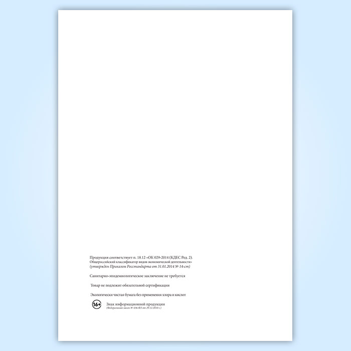 Вы получаете печатную продукцию прошнурованной и c местом для вашей печати в соответствии с действующими нормативными документами: