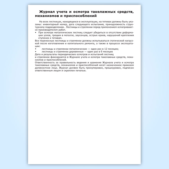 Журнал учета и осмотра такелажных средств, механизмов и приспособлений в Ачинске купить