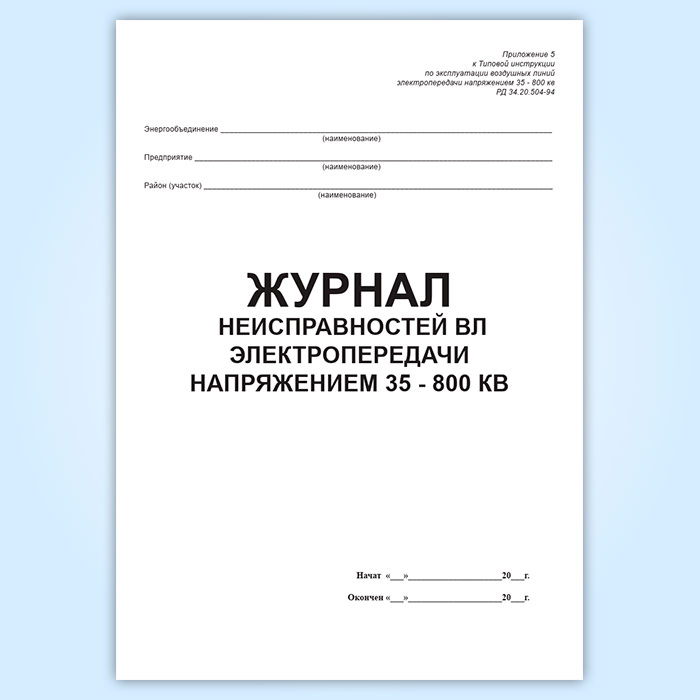 Журнал учета работ на ВЛ электропередачи напряжением 35-800 квВ в Ачинске купить