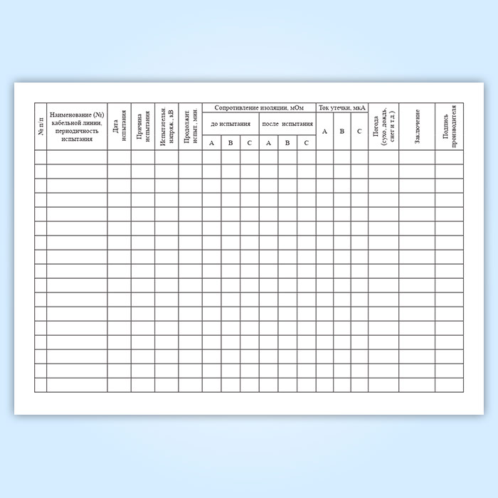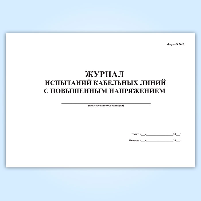 Журнал испытаний кабельных линий с повышенным напряжением (форма № 20-Э) в Ачинске купить