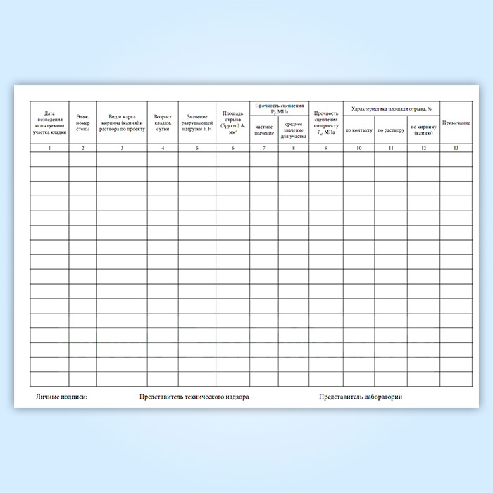 Журнал контрольных испытаний прочности сцепления в кладке на строительной площадке в Ачинске купить