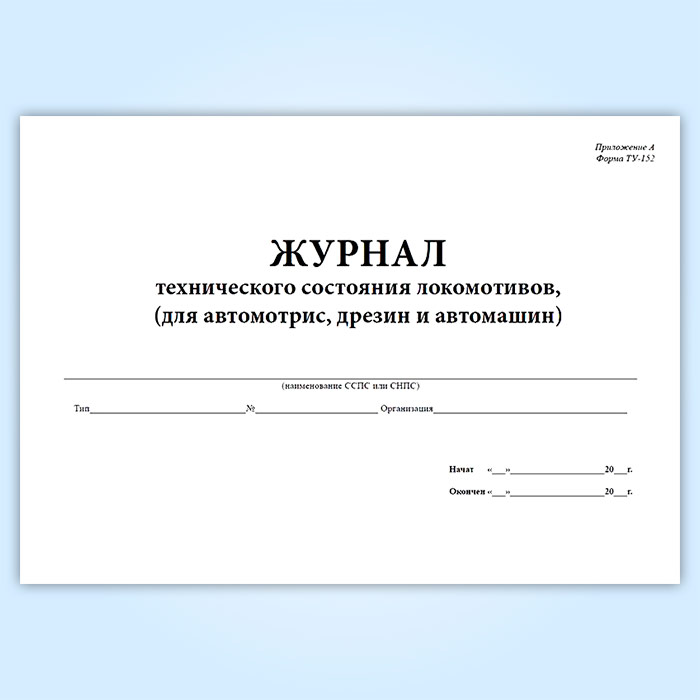 Журнал технического состояния локомотивов (для автомотрис, дрезин и автомашин) (форма ТУ-152) в Ачинске купить