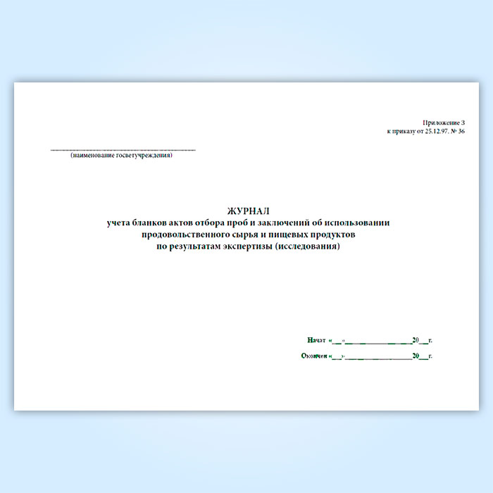 Журнал учета бланков отбора проб и заключений об использовании продовольственного сырья и пищевых продуктов в Ачинске купить