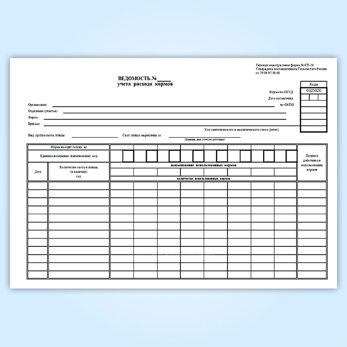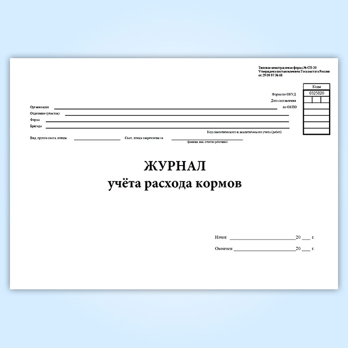 Журнал учета расхода кормов (форма № СП-20) в Ачинске купить