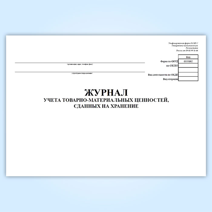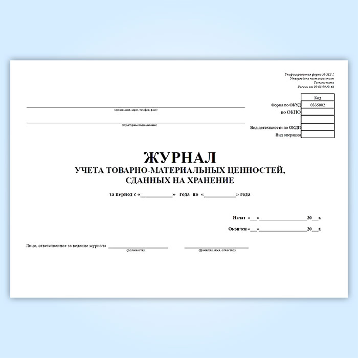 Журнал учета товарно-материальных ценностей, сданных на хранение (форма № МХ-2) в Ачинске купить