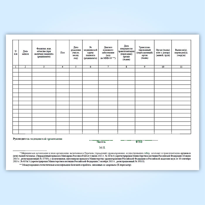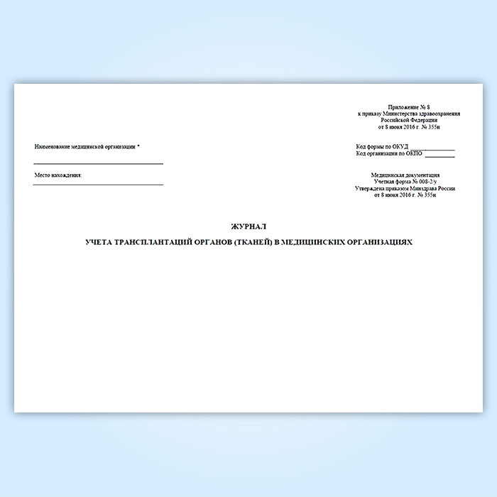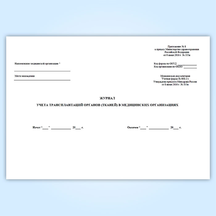 Журнал учета трансплантаций органов (тканей) в медицинских организациях (форма № 008-2/у) в Ачинске купить