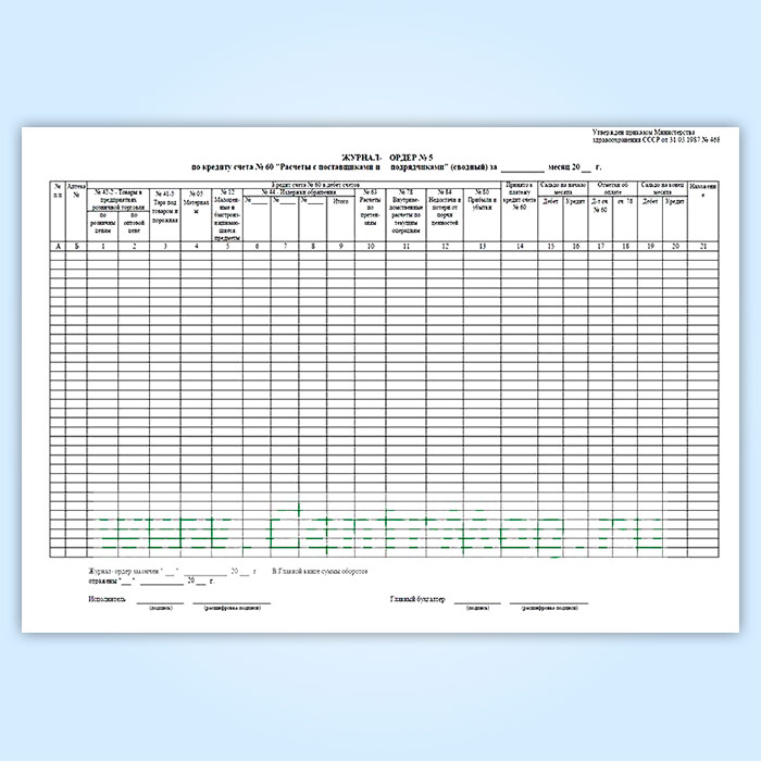 Журнал-ордер № 5 по кредиту счета № 60 «Расчеты с поставщиками и подрядчиками» (сводный) в Ачинске купить